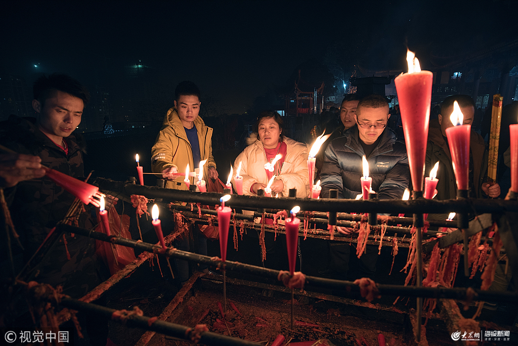 2019年2月5日,四川綿陽(yáng),凌晨1點(diǎn),香客以到圣水寺燒頭香的方式開啟農(nóng)歷新年的第一天。