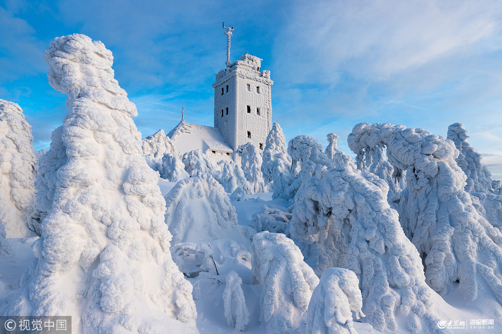 2019年2月9日訊(具體拍攝時間不詳),這座看似超現實的山被4英尺厚的雪覆蓋后,就像童話般的冬日仙境。森林,甚至包括氣象站都被雪完全覆蓋,樹木和其他植被幾乎無法辨認。這些令人驚嘆的大雪照片是在德國薩克森的4000英尺高的費希特爾伯格山上拍攝的。雜貨商Christoph Schaarschmidt從家里出發,經過一個半小時的跋涉,穿過厚厚的積雪到達氣象站,捕捉到了這一不可思議的場景。圖片作者:Solent News/視覺中國
