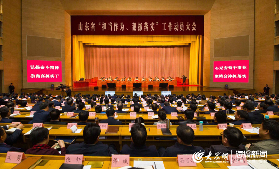 大眾網·海報新聞濟南2月11日訊(記者 畢勝)春節后上班第一天,2月11日(正月初七)上午,山東省“擔當作為、狠抓落實”工作動員大會在濟南召開。山東省委書記劉家義發表講話,山東省委副書記、省長龔正主持會議。本次動員大會針對當前有些地方和部門存在抓落實不夠等問題,在山東全省部署開展“工作落實年”活動。大會主會場設在濟南山東會堂,約2000人參會,各市、縣(市、區)設分會場,分會場采用視頻會議形式。
