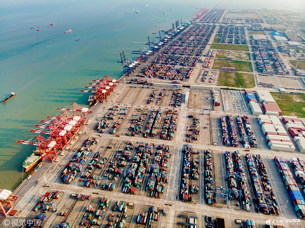 2018年12月14日,航拍廣州南沙自貿區,南沙區海港大道,南沙新港集裝箱貨柜碼頭。