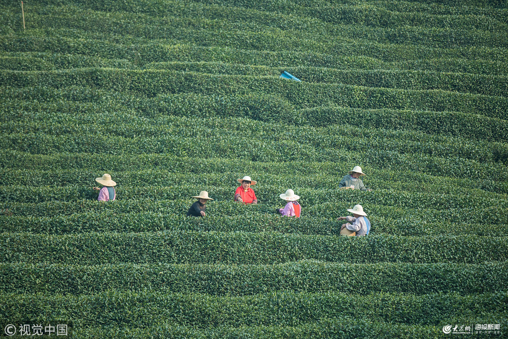 2019年3月20日,杭州,西湖龍井頭采第一天,明前茶賣到5000元一斤。商家訂單不斷,實在忙不過來,開始高薪招聘資深采茶工。