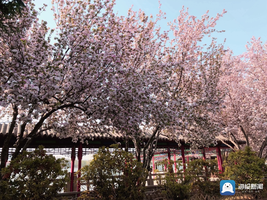 大眾網(wǎng)·海報新聞濟南3月26日訊(記者 李金珊)26日,海報新聞記者從濟南大明湖景區(qū)看到,海棠花已經(jīng)開滿枝頭,翠綠的枝葉,一簇簇粉粉的花朵,形成了美麗的海棠花海,引了不少市民游客前來駐足觀賞,拍照留念。據(jù)了解,海棠花花期一般為7-10天,錯過這等美景,再想看就要在等一年了哦!