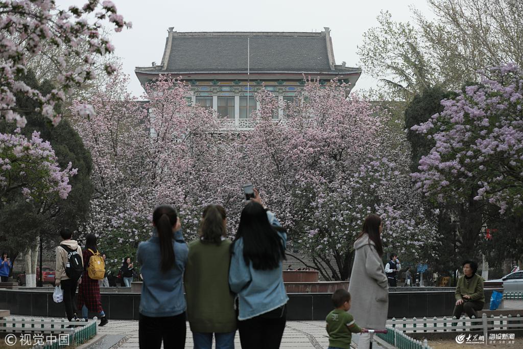 2019年3月27日,濟(jì)南,山東師范大學(xué)千佛山校區(qū),海棠、丁香、桃花迎春嬌艷盛開,山師校園成為最美麗的花海。