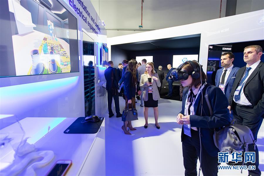 4月15日,在俄羅斯索契,一名參觀者在俄羅斯國家原子能公司展區體驗VR設備。 當日,第十一屆俄羅斯國際核工業展覽會在索契開幕。為期兩天的展覽會吸引來自全球74個國家的3600余人參與。 新華社記者 白雪騏 攝
