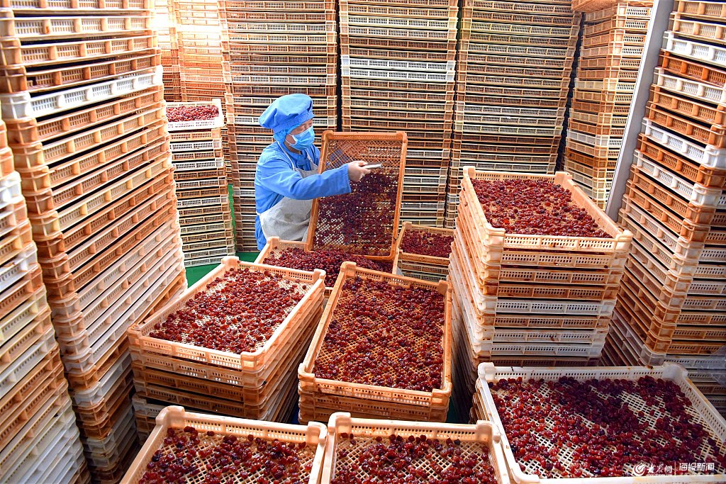 山東淄博:工人加工櫻桃忙