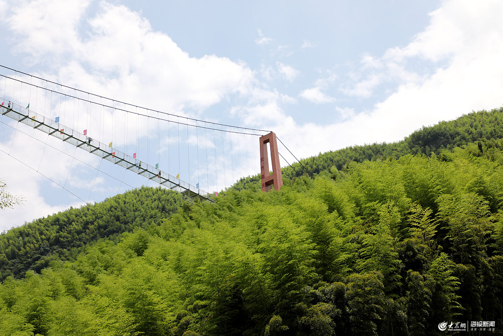 2019年7月6日,浙江湖州,安吉大竹海剛試營(yíng)業(yè)玻璃天橋上游客絡(luò)繹不絕,站在高空欣賞連片的竹海美麗畫(huà)面。大竹海玻璃天橋橫跨兩座高山,全長(zhǎng)468米,離地面高度107米,據(jù)悉,這也是中國(guó)最長(zhǎng)的竹海玻璃天橋。