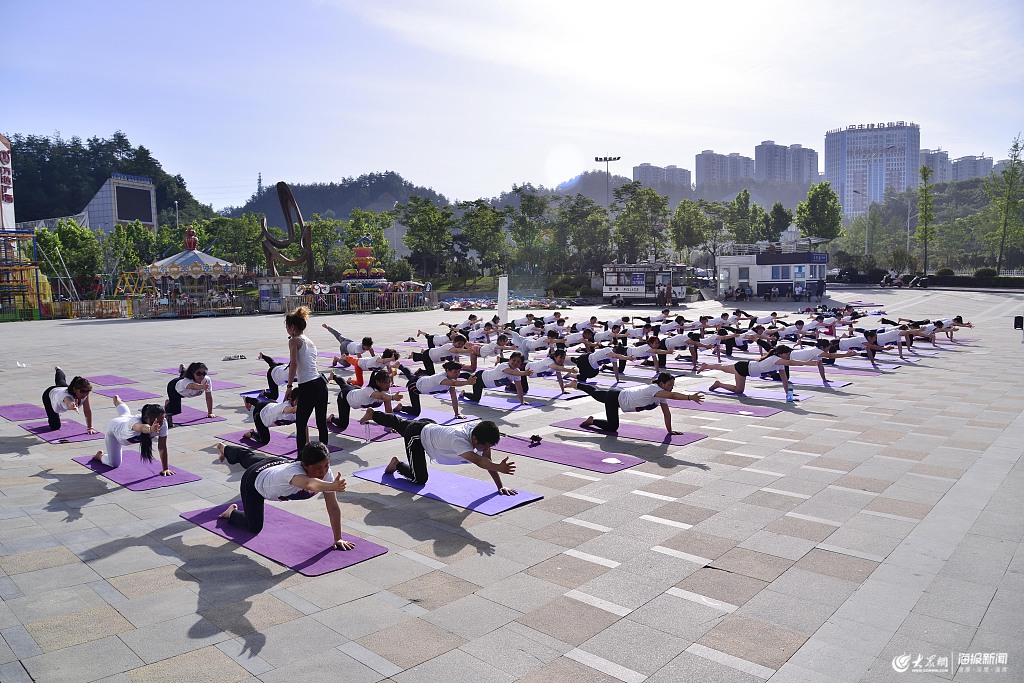 湖北十堰:瑜伽愛好者健身度夏日