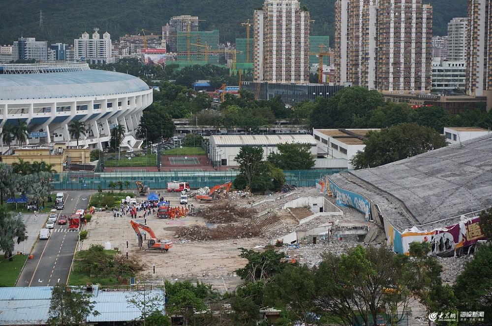 2019年7月8日,深圳,正在施工的深圳體育館發生突然倒塌事故。目前,深圳消防正在展開救援,已有傷者被送往附近醫院。據了解,此次倒塌的體育館前身是籃球館,由于要進行升級改造,館里所有商鋪已被清理干凈,倒塌前只剩下部分支撐柱,外圍基本拆除完畢。