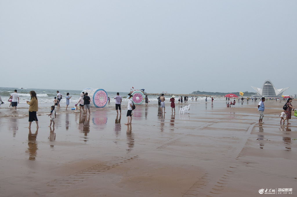 2019年7月17日,天氣炎熱,青島市黃島金沙灘海風(fēng)吹得游人醉,游客在大海中盡情地戲水、拍照,享受大海的美景。