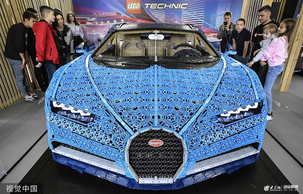 當地時間2019年7月23日,俄羅斯莫斯科,一輛由樂高積木拼成的全尺寸布加迪汽車模型在當地展出。該模型由100多萬個零件組成,重1500公斤,最高時速可達20公里。這輛汽車模型由樂高專家們花費13438個小時來設計和組裝,并且沒有用到一滴膠水。