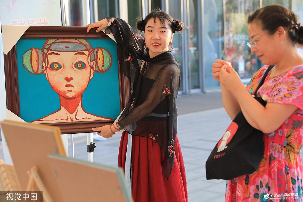 2019年8月10日,西安, 2019第三屆大學(xué)生畢業(yè)旅行季活動在南二環(huán)一街頭廣場舉辦,來自西安美院等高校的應(yīng)屆畢業(yè)生和在校大學(xué)生設(shè)攤,出售自己創(chuàng)作的文創(chuàng)作品。