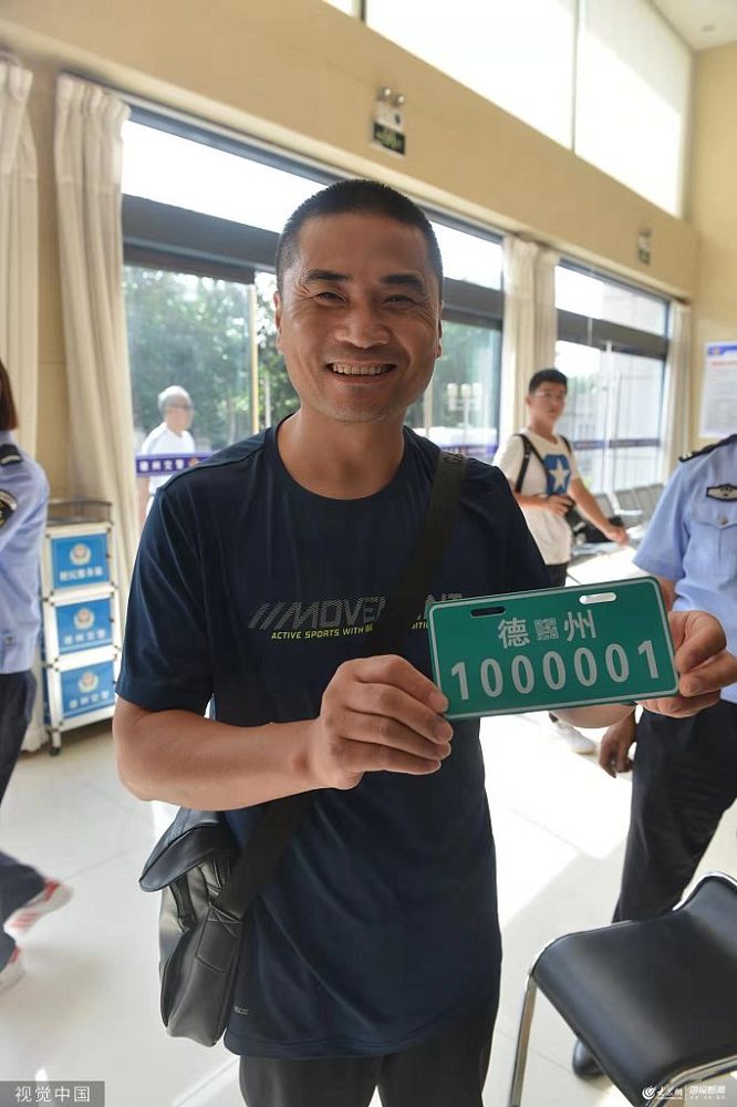 2019年8月19日,山東德州,市民領到了全省第一張電動車號牌“德州1000001”。