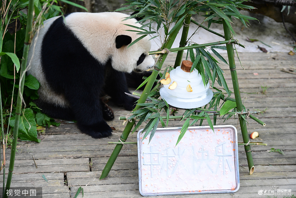 貴陽:大熊貓吃上中秋月餅 細嚼慢咽“萌萌噠”
