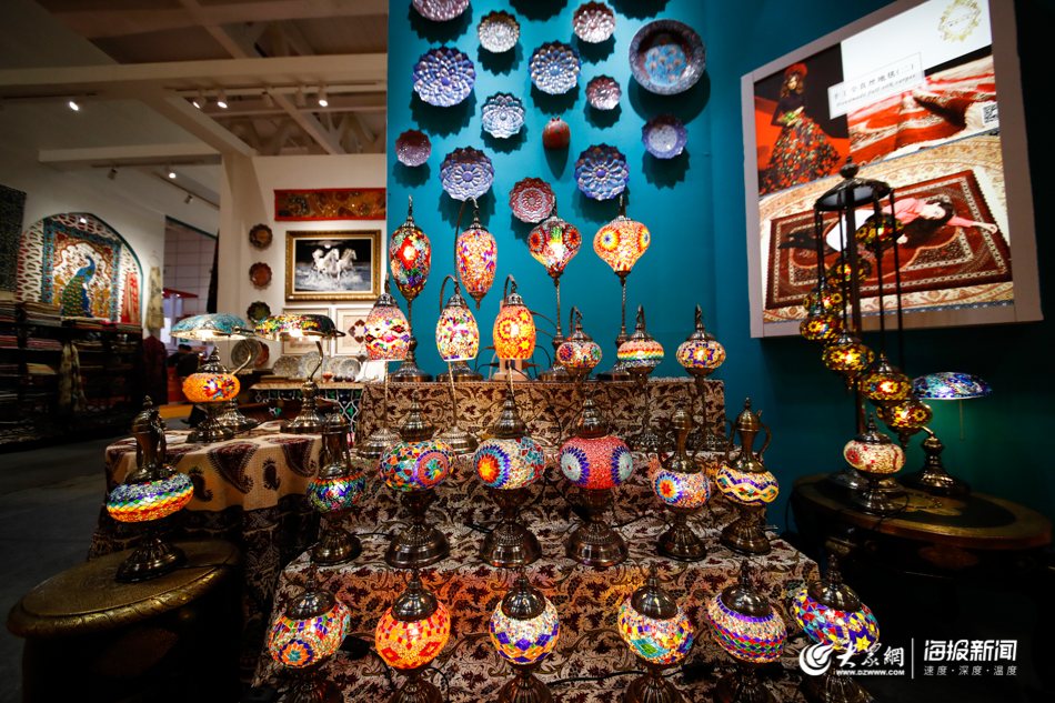 大眾網·海報新聞濟南9月21日訊(記者畢勝 張珈瑋)在第八屆山東文博會現場,B1“一帶一路“展區人頭攢動,不少游客在這個展區流連忘返,51個國家的365家國際展商,代表本土特色的產品玲瑯滿目地擺放在各個風格迥異的展館內,使人目不暇接。據悉,本屆文博會的參展國家數量、國際化程度堪稱“歷屆之最”。 第八屆山東文博會伊朗展區的精美臺燈。