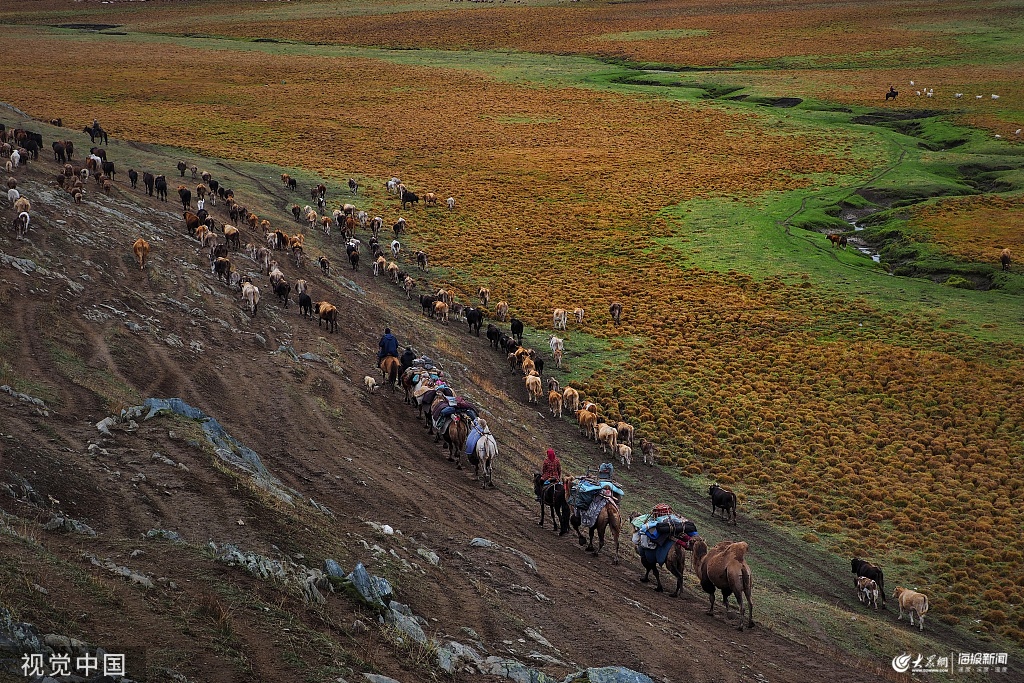 2019年9月10日,新疆阿勒泰,哈薩克族牧民從托勒海特夏牧場開始向秋牧場遷徙。