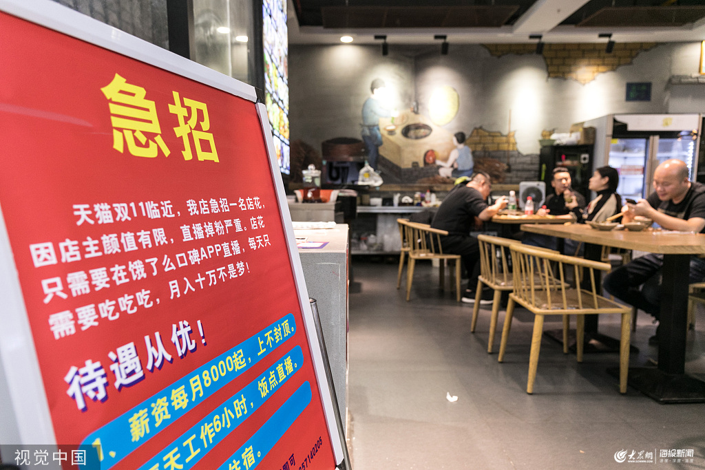 2019年10月24日,杭州,一家快餐店緊急貼出一則特殊的招聘啟事,急招“店花”,只要負(fù)責(zé)在鏡頭前吃得好看。
