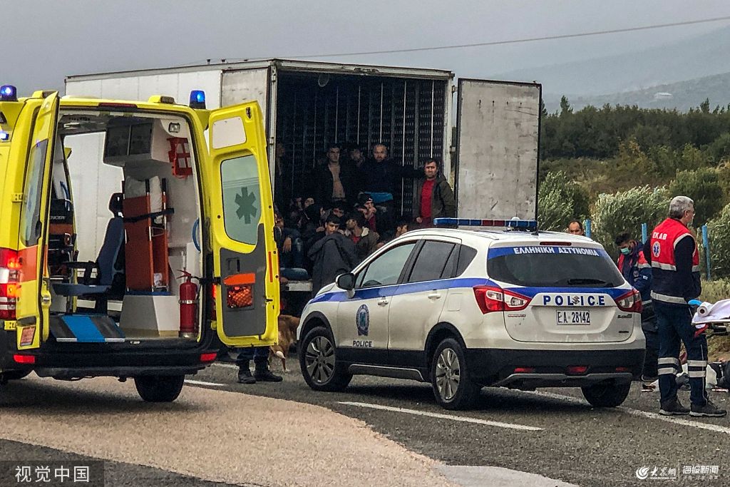 當地時間2019年11月4日,據希臘警方消息,該國警方在希臘北部克桑西和科莫蒂尼之間的一條高速公路上攔下一輛冷藏車,車內發現41名移民。法新社報道援引一名警官說法稱,其中大多數是阿富汗人,身體狀況良好。
