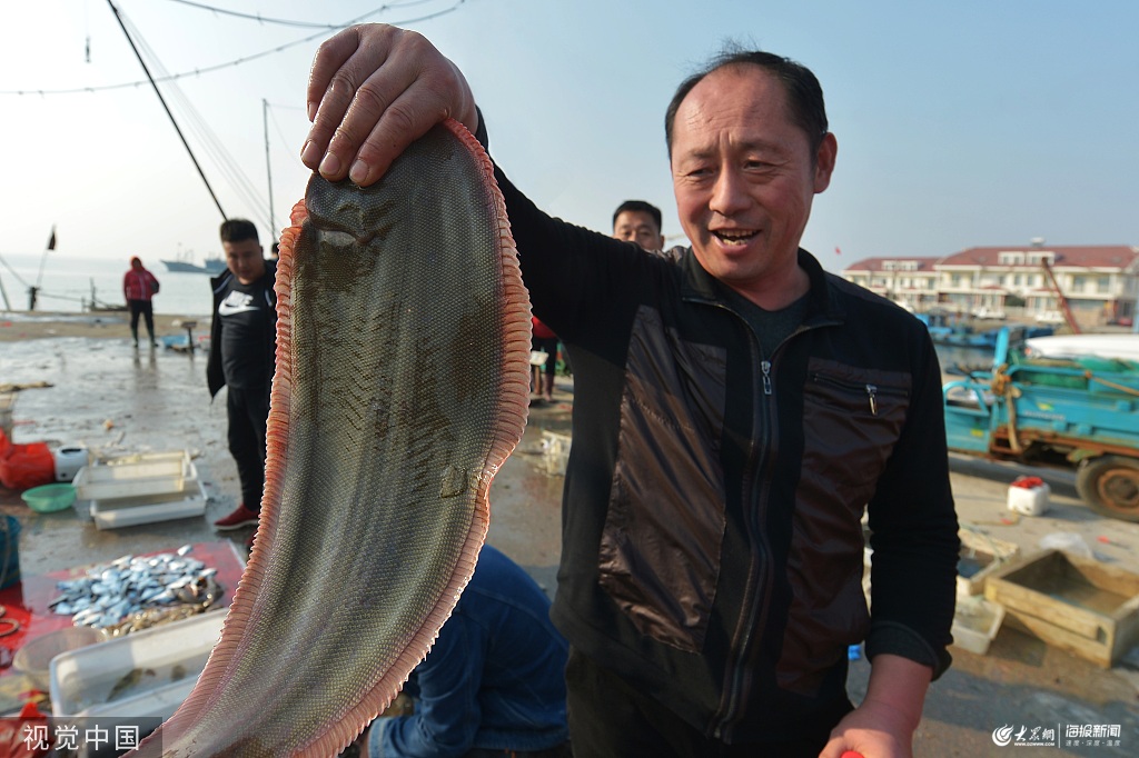 2019年11月5日,青島,秋捕時節,紅島漁村下海捕撈的漁船陸續回港,漁民們在碼頭上將漁獲依次擺開就地銷售,樂在秋日豐收時。