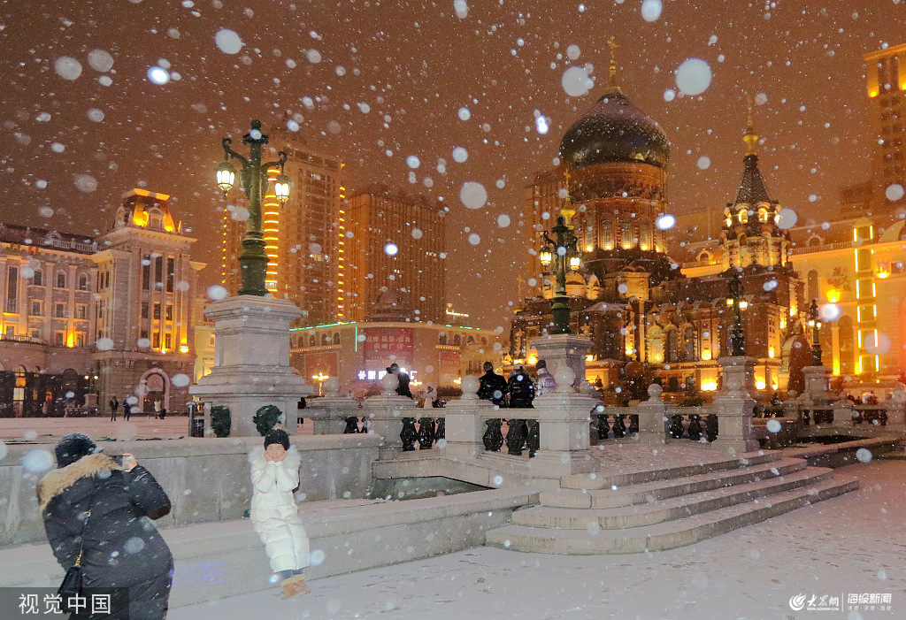 哈爾濱:暴雪襲來 索菲亞教堂美如“童話世界”