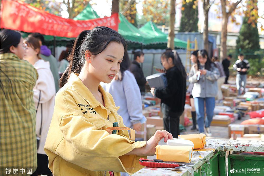 2019年11月15日,濟(jì)南,雙十一”網(wǎng)絡(luò)銷售大戰(zhàn)已過去幾天了,隨著各地快遞配送高峰的到來,高校則成為另一個(gè)“戰(zhàn)場(chǎng)”,濟(jì)南某高校快遞服務(wù)點(diǎn)出現(xiàn)“爆倉”景象,包裹“堆積如山”,領(lǐng)快遞的學(xué)生排起長(zhǎng)隊(duì)。