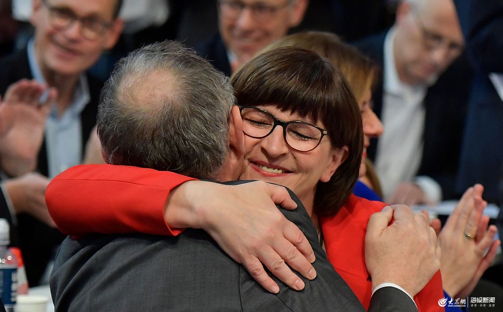當?shù)貢r間2019年12月6日,德國柏林,德國社會民主黨(社民黨)召開黨代會,正式選舉薩斯基婭·艾斯肯和諾貝特·瓦爾特-博爾揚斯為黨主席,確認了11月30日的選舉結(jié)果。
