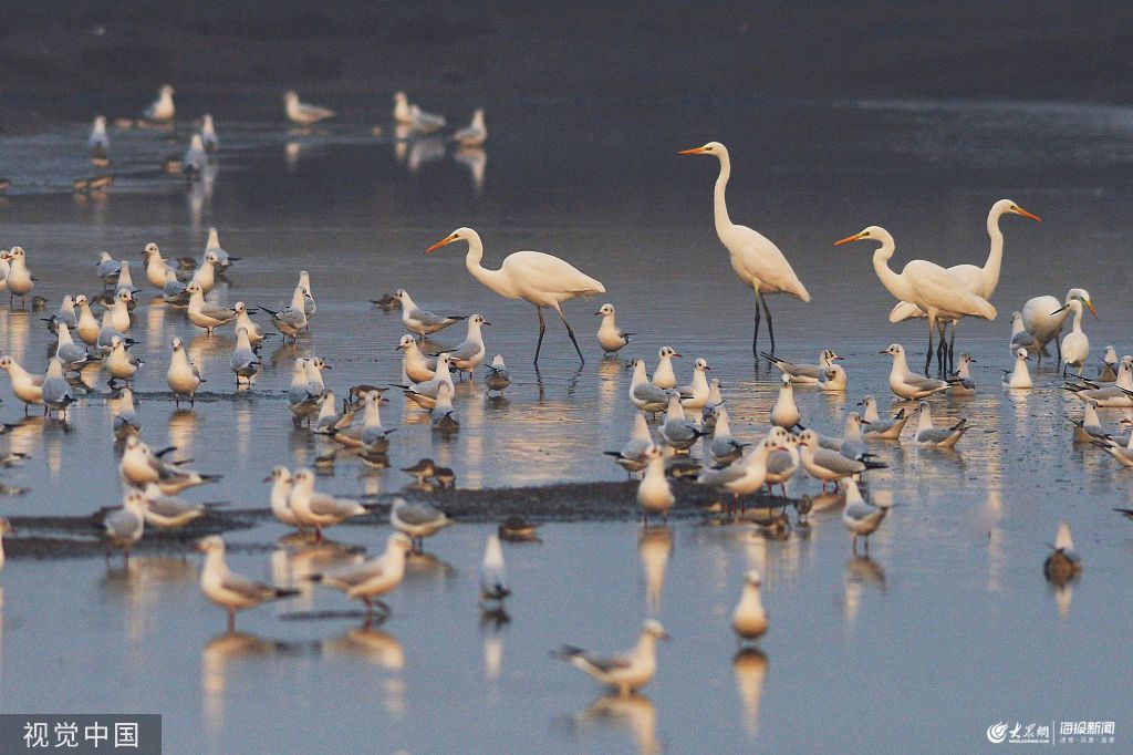 青島河套濕地迎來眾多候鳥回遷越冬 宛如唯美生態畫卷