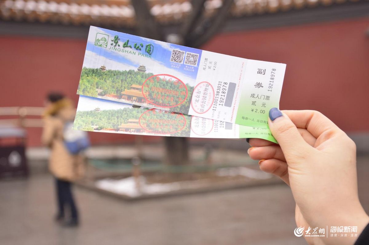 下午13時,大眾網(wǎng)·海報新聞記者趕到景山公園,此時,售票處排起了長龍,聚滿了排隊(duì)上山的人們。