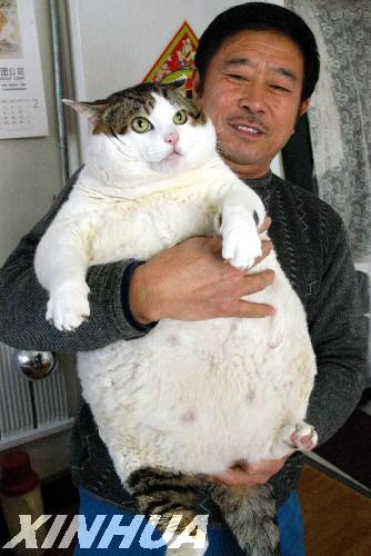 2月16日,主人抱著“超級(jí)”肥貓合影。家住青島市重慶南路的徐繼榮先生家有一只體重達(dá)15公斤的“超級(jí)”肥貓。