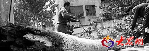 大樹被大風攔腰折斷,工人緊急排險。(記者 石念軍 攝) 生活日報4月17日訊(記者 石念軍)16日夜,省城瞬間風力最高達到9級。巨大的風力給人們的生活直接帶來了影響,甚至直接威脅到人們的生命財產安全。昨夜今晨,記者接到讀者反映后第一時間趕赴多個現場,記錄下了大風中的一些人和事。 現場一 時間:16日晚8:00許 地點:龍洞路某大型工地工人宿舍 板房吹“禿”頂工人連夜忙搬家 16日晚8:00許,龍洞路南段一工地宿舍門口,七八個工人正在收拾一大堆的泡沫板。 這一宿舍院內南北兩側,均是一排二層的宿舍。二樓房屋系泡沫板搭成的板房。此時,南側一排宿舍的二樓東段的五六間板房的房頂都已被洞穿,十多個工人正提著被子和大包的行李往外“搬家”。而在門口,已有十多位工人已守著行李,等待安排新的住所。 工人介紹,當晚7:00許,因風力太大,這五六間板房的房頂一下子都被風掀了下來。 現場二 時間:16日晚10:10許 地點:洪樓附近某校園內 大樹迎風倒一女生不幸喪命 16日晚10:10許,風聲呼嘯。洪樓附近某校園內,學生多已休息,校園內行人稀落。道邊綠化樹的樹冠呼呼搖擺。 該校園足球場與15號研究生公寓間的一片小樹林中,成排的自行車不少都已倒地。而一棵高約20多米、最大直徑約30厘米的楊樹被吹倒在地,樹梢橫倒在小路邊。 15號公寓內的一位女生親眼目睹了事發時的情形。據她介紹,當時是16日晚10:10許。當時,她和同伴正在趕回公寓的路上。而走到小樹林附近時,她因接一個電話而放慢了腳步。不一會兒,已經走到前邊的同伴喊她快走。結果,兩人這才發現,就在她們之間的路面上,已經倒下了一棵樹。她剛要起腳邁過,卻又突然發現樹下躺著一個女生!“女生的頭被壓在樹下,已經流了很多血……” 該女生立馬撥打學校保衛科的電話,同時撥打120。受傷女生很快被送往醫院急救。 后據了解,受傷女生被送往醫院后,傷重身亡。 現場三 時間:17日上午9:00—10:00 地點:二環東路省輕工業學院門口附近、花園路路口東南角 多條路段大樹傾倒 工人緊急搶險 17日上午9:00許,二環東路省輕工業學院門口南北兩側的人行道上,分別有一棵直徑約20厘米的楊樹從根部倒地、一棵直徑約30厘米的楊樹樹冠折斷后墜地。 12319工作人員和園林搶險工作人員正在現場處理,防止影響交通。 9:30許,在二環東路與花園路路口東南角人行道上,也有一棵直徑約30厘米的楊樹從底部折斷,幸好樹干傾倒后,樹冠砸到了北側另一棵大樹上才沒有倒地。但因17日上午的風力仍舊較大,這一情況讓過往行人無不提心吊膽。隨后,園林搶險工作人員也趕到現場,將傾倒的大樹進行了清理,確保交通安全。 |