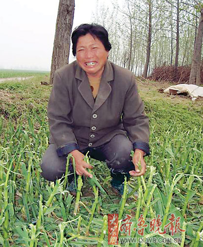 左圖:金鄉蒜農在冰雹襲擊過的蒜地里失聲痛哭! 埡昀凇z
