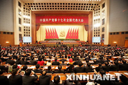 10月21日九時(shí),中國(guó)共產(chǎn)黨第十七次全國(guó)代表大會(huì)閉幕會(huì)開(kāi)始在北京人民大會(huì)堂舉行。 新華社記者 馬占成攝