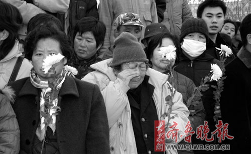 。保苍拢度障挛纾袋c,凜冽的寒風,臨近傍晚時壓抑的天空?勺屓烁杏X更加壓抑和悲痛的,是齊河縣晏城火車站前密密麻麻的人群。整個廣場站滿了,又甩向了鄰近的南外環路,南外環西頭站滿了,又一路向東延伸,一直延伸出去三公里。而四面八方的人流,還在源源不斷地向這里會集……
