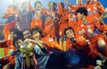 ·以橘紅色為基本色調(diào)的魯能泰山足球隊,在這個足球的"嚴(yán)冬"像一束烈焰溫暖了廣大球迷的心:本賽季,它像一匹強勁的"黑馬",殺入中超聯(lián)賽、中超杯賽和足協(xié)杯賽三大賽事的決賽,并成為"雙冠王"。他們成為今年中國足壇不多的"亮點"之一 。