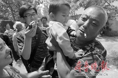 劉光瑞(右)見到自己的孫子親個不停。本版照片均由本報記者戴偉攝