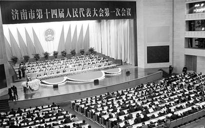 濟(jì)南市第十四屆人民代表大會(huì)第一次會(huì)議在山東會(huì)堂隆重開幕 記者 孫萇青 攝