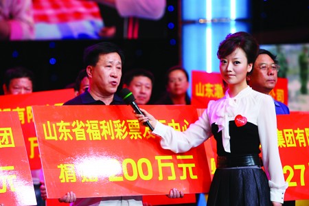 本報(bào)訊“我們現(xiàn)在做不到以命換命了,就讓我們以心換心吧!”昨天晚上,“魯川血脈情·幫災(zāi)區(qū)人民建個(gè)家——山東省宣傳文化系統(tǒng)大型賑災(zāi)義演募捐活動(dòng)”帶動(dòng)了現(xiàn)場(chǎng)社會(huì)各界代表一輪又一輪的捐款高潮。中國(guó)建設(shè)銀行山東分行、中國(guó)農(nóng)業(yè)銀行山東分行、中國(guó)工商銀行山東分行、新華人壽保險(xiǎn)山東分公司等單位都是二次捐款,且都超過(guò)了100萬(wàn)元。山東省福利彩票發(fā)行中心向地震災(zāi)區(qū)捐善款200萬(wàn)元。海爾集團(tuán)更是在先期捐款捐物1437萬(wàn)元的基礎(chǔ)之上,又在直播現(xiàn)場(chǎng)為災(zāi)區(qū)捐獻(xiàn)了500萬(wàn)元人民幣。