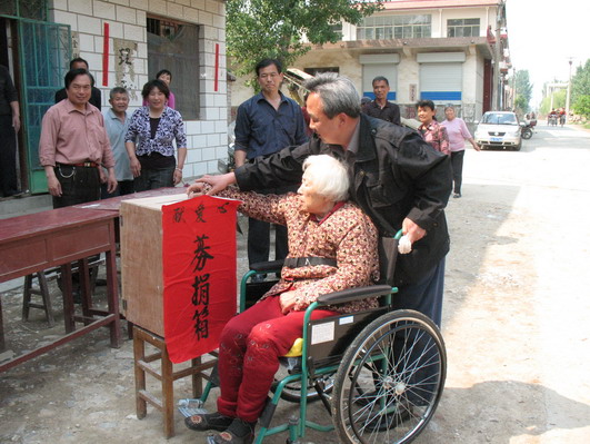 5月20日,在長清區老年大學內設置的捐款箱前,很多人都自覺的排隊向災區人民捐款,秩序井然。忽然,捐款的和接收捐款的人爭執起來,立刻吸引了大家的注意。原來百貨公司的退休老干部馬萬義一家十口,子女大都下崗,沒有正式工作,生活并不寬裕,聽說四川地震,馬萬義老人拿出自己月工資的一半(700元錢)捐上,身旁的人了解他情況的人勸他:你們家也挺困難的,就少捐一點吧。馬萬義老人說,我有剩下的700塊錢這個月就能過,但災區的人民有的還吃不上飯,他們比我更需要錢。