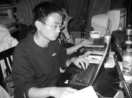 劉海鵬在青川縣抗震救災(zāi)指揮部寫稿。