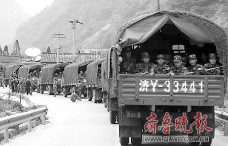 濟南軍區是救援大軍中的重要力量。 本版照片均為本報救援報道特派記者 周青先 攝