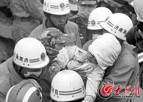 5月16日18時58分,濟南消防官兵成功救出被埋壓100個小時的女孩尚婷。