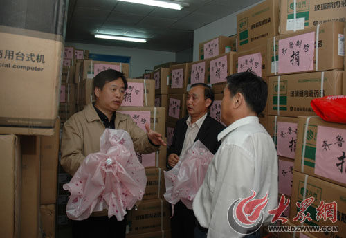 15日晚21時(shí),張偉副秘書(shū)長(zhǎng)冒雨慰問(wèn)市紅會(huì)工作人員并察看了擬發(fā)往災(zāi)區(qū)的物資