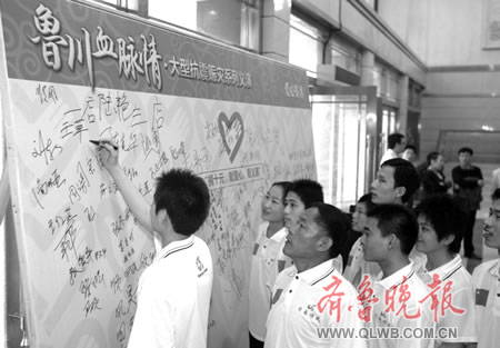 觀看義演的觀眾現場簽名。 本版照片均由記者 徐延春 攝 本報訊 為表達全國各族人民對四川汶川大地震遇難同胞的深切哀悼,國務院決定,2008年5月19日至21日為全國哀悼日。在此期間,全國停止公共娛樂活動,以此表達我們對這次地震災害中的罹難者、在救災中的犧牲者的哀思。為響應國務院的公告,本報、生活日報聯合山東省慈善總會、山東省文化廳發起的,“魯川血脈情”大型抗震救災義演主辦方做出緊急決定,將原定5月19日晚7:30舉行的義演遲至22日晚舉行。 “魯川血脈情”大型抗震救災義演消息見諸本報之后,連日來引起了省內社會各界的廣泛關注,我省眾多老藝術家和省直藝術院團,紛紛請纓承擔演出任務。各企事業單位、熱心讀者和市民也紛紛致電本報,表示希望參與此次義演,他們積極行動捐款捐物,甚至有些讀者強烈要求收養在四川地震中幸存下來的孤兒,以此表達對四川受災地區同胞的哀悼之情。 但由于19日至21日為國務院設定的全國哀悼日,主辦方緊急決定推遲演出時間,對此,參與本場演出的眾多演職人員和工作人員表示充分理解和支持。一位省直藝術院團的演員在接到義演推遲的消息后對記者表示:“汶川地震的救災行動已經進入關鍵階段,災難之初就被提及的話題——哀悼,愈發引起人們的共鳴。我們現在需要尊重那些不幸的遇難者,給他們以生命最后的尊嚴和最為沉痛的哀思。” 記者從主辦方獲悉,義演將推遲至22日,演出地點不變,此前的義演愛心捐贈熱線0531—85193391將繼續開通,歡迎廣大讀者和企事業單位踴躍捐獻,為災區奉獻愛心。