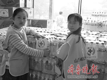 18日上午,在山東省紅十字會(huì),上百名志愿者正在緊張忙碌地搬運(yùn)著抗震救災(zāi)的物資。這其中有兩位瘦小的身軀引起了人們的注意。他們是來(lái)自南上山街小學(xué)三年級(jí)的沈晨和東方雙語(yǔ)實(shí)驗(yàn)學(xué)校四年級(jí)的車(chē)水清。聽(tīng)說(shuō)了四川的災(zāi)情后,孩子們也想奉獻(xiàn)一分愛(ài)心。 早晨8點(diǎn)她們就來(lái)到現(xiàn)場(chǎng),為災(zāi)區(qū)捐款、引導(dǎo)著愛(ài)心捐款人到捐款處、給救災(zāi)物資貼上紅十字標(biāo)簽,做著力所能及的工作。 常新喜 攝