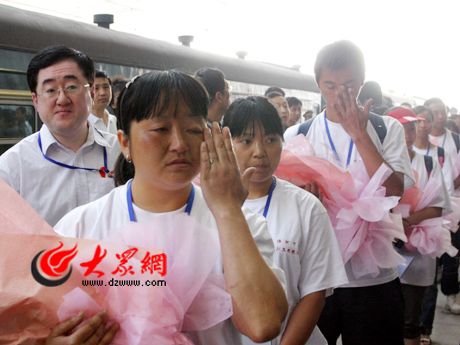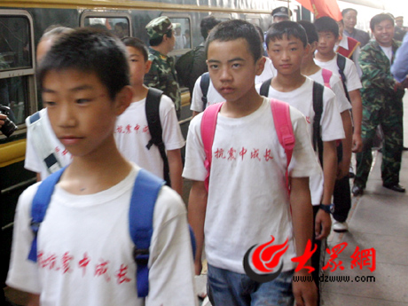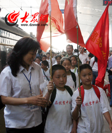 大眾網(wǎng)濟(jì)南6月5日訊 (記者 吳哲 陳琛)首批來濟(jì)過渡復(fù)學(xué)的848名北川縣擂鼓鎮(zhèn)師生今晨抵達(dá)濟(jì)南。濟(jì)南市市長張建國親自到火車站迎接并為北川縣擂鼓鎮(zhèn)848名師生授旗。隨后,災(zāi)區(qū)師生分乘大巴車直赴四所學(xué)校。孩子們被安排在環(huán)境整潔的學(xué)生宿舍中,領(lǐng)到了統(tǒng)一的服裝、文具和毛巾、牙刷等生活日用品。 濟(jì)南幼兒師范教育處馬洪秀主任告訴記者,今天下午學(xué)校師生為四川來的同學(xué)們安排了一個小型的歡迎典禮。希望通過典禮以及接下來的活動增加和學(xué)生們的溝通,讓這些經(jīng)歷過地震災(zāi)害的孩子更快的適應(yīng)這里的生活。