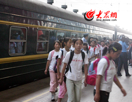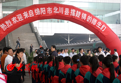 今晨7點(diǎn)17分,首批來濟(jì)過渡復(fù)學(xué)的848名北川縣擂鼓鎮(zhèn)師生抵達(dá)濟(jì)南火車站。