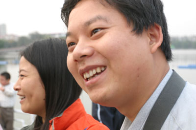 在馬鞍山采訪期間,采訪團在聽取南湖治理情況的介紹。看,這位來自中國江西網的記者聽得多么認真。 |