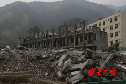 廢墟前,祭奠遇難師生場所
