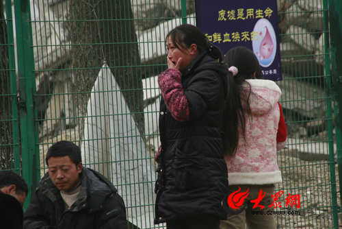 廢墟前含淚祭奠的家長