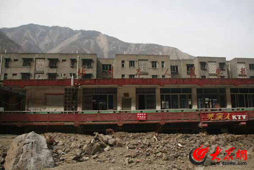 縣城已沒有完整的建筑,坍塌成一堆水泥廢墟樓房遍地比比皆是,許多沒有傾倒的大樓也是東倒西扭,五層變三層,一樓變地下室,城中原本筆直的大橋震成了波浪狀,山谷一側大山坍塌的土石沖進縣城掩埋了老城區,另一側滾落的巨石則砸碎了建筑和道路,大自然的力量讓記者一行人深深敬畏。