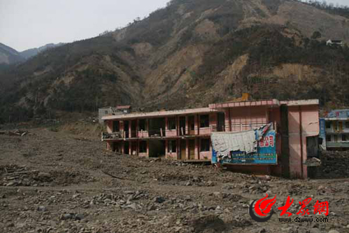 地震后的樓房又被泥石流掩埋